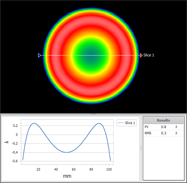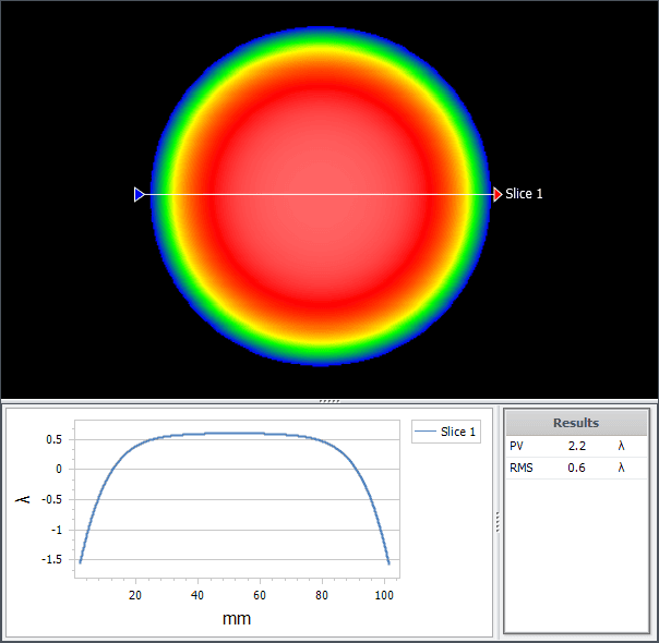 Irregularity also includes the rotationally symmetric (RSI) component, specified separately. RSI errors are radially symmetric, having a consistent surface profile from center to edge regardless of orientation. A common RSI error is ‘edge roll’, where the surface falls off quickly at the edge. This can have a ‘soap bubble’ effect on images, where a bright star appears to have a sharp ring around it, or a streetlamp appears to have a brighter ring around its edge.