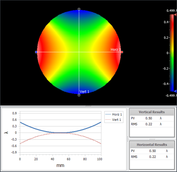 Power error in spherical, cylindrical, and aspheric surfaces is the result of an incorrect radius of curvature. AMS measures radius of curvature directly and can convert the error from nominal radius (in millimeters) to an equivalent power error.